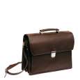 Ce cartable trois soufflets en cuir de vachette grainé peut se porter à la main ou sur l'épaule grâce à sa bandoulière amovible. Il dispose à l'intérieur de trois compartiments et d'une poche à fermeture éclair ainsi que de divers espaces de rangement pour stylos, porte-clés et téléphone portable.
