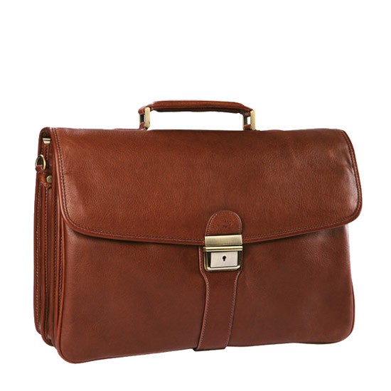 Ce cartable quatre soufflets en cuir de vachette sauvage peut se porter à la main ou sur l'épaule grâce à sa bandoulière amovible. Il dispose à l'intérieur de plusieurs compartiments et poches à fermeture éclair ainsi que d'espaces de rangement pour stylos, porte-clés et téléphone portable.