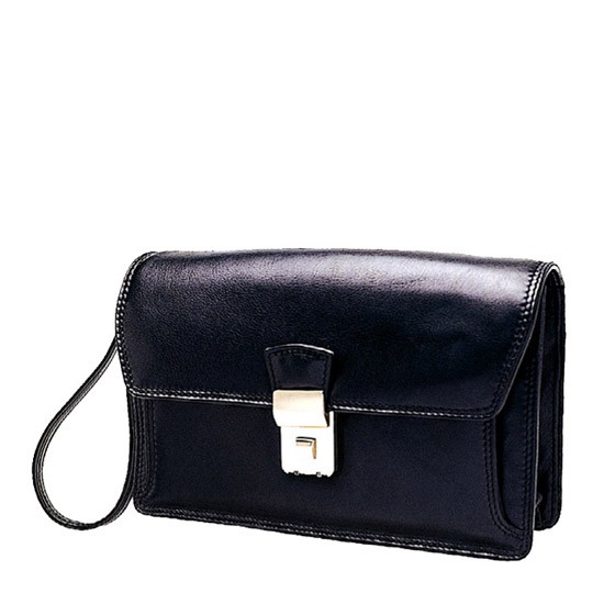 Cette pochette vide-poche un soufflet en cuir de vachette lisse est dotée d'une dragonne amovible pour passer autour du poignet. Entièrement doublée à l'intérieur, elle se ferme à l'aide d'un rabat à fermoir.