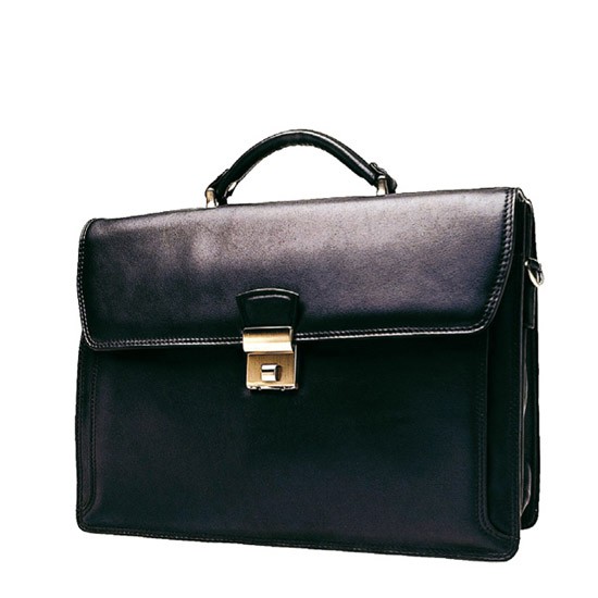 Ce cartable deux soufflets en cuir de vachette lisse peut se porter à la main ou sur l'épaule grâce à sa bandoulière amovible. Il dispose à l'intérieur de deux compartiments et d'une poche à fermeture éclair ainsi que de divers espaces de rangement pour stylos, porte-clés et téléphone portable.