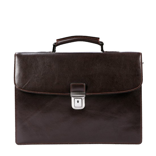 Ce cartable deux soufflets en refente de cuir de vachette peut se porter à la main ou sur l'épaule grâce à sa bandoulière amovible. Il dispose à l'intérieur de deux compartiments ainsi que de divers espaces de rangement pour stylos, porte-clés et téléphone portable.