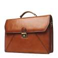 Ce cartable deux soufflets en refente de cuir de vachette peut se porter à la main ou sur l'épaule grâce à sa bandoulière amovible. Il dispose à l'intérieur de deux compartiments ainsi que de divers espaces de rangement pour stylos, porte-clés et téléphone portable.