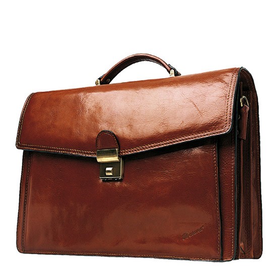 Ce cartable trois soufflets en cuir de vachette collet peut se porter à la main ou sur l'épaule grâce à sa bandoulière amovible. Il dispose à l'intérieur de trois compartiments et d'une poche à fermeture éclair ainsi que de divers espaces de rangement pour stylos, porte-clés et téléphone portable.