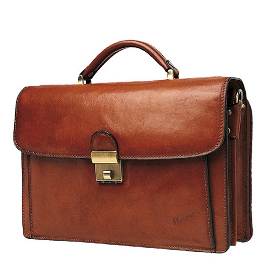 Ce cartable deux soufflets en cuir de vachette collet peut se porter à la main ou sur l'épaule grâce à sa bandoulière amovible. Il dispose à l'intérieur de deux compartiments et d'une poche à fermeture éclair ainsi que de divers espaces de rangement pour stylos, porte-clés et téléphone portable.