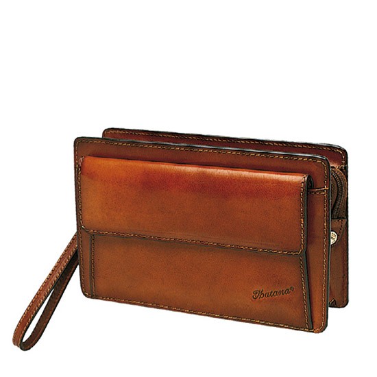 Ce vide-poche un soufflet en cuir de vachette collet, doté d'une dragonne pour passer autour du poignet, peut également se porter sous le bras. Entièrement doublée à l'intérieur, cette pochette homme se ferme à l'aide d'une fermeture éclair.