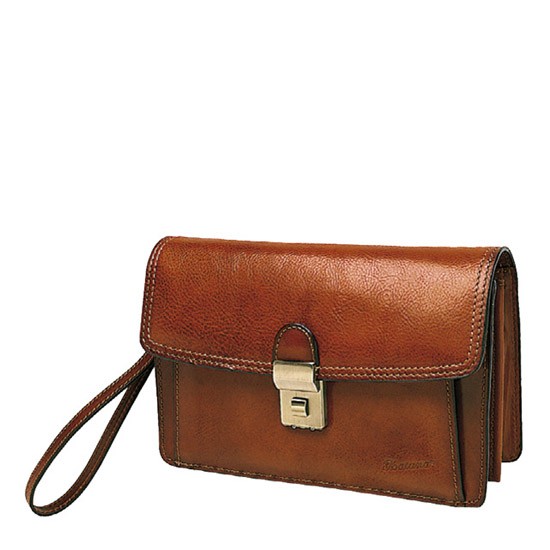 Ce vide-poche deux soufflets en cuir de vachette collet, doté d'une dragonne pour passer autour du poignet, peut également se porter sous le bras. Entièrement doublée à l'intérieur, cette pochette homme se ferme à l'aide d'un rabat à fermoir.