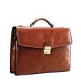 Ce cartable deux soufflets en cuir de vachette collet peut se porter à la main ou sur l'épaule grâce à sa bandoulière amovible. Il dispose à l'intérieur de deux compartiments et d'une poche à fermeture éclair ainsi que de divers espaces de rangement pour stylos, porte-clés et téléphone portable.