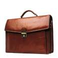 Ce cartable deux soufflets en cuir de vachette collet peut se porter à la main ou sur l'épaule grâce à sa bandoulière amovible. Il dispose à l'intérieur de deux compartiments et d'une poche à fermeture éclair ainsi que de divers espaces de rangement pour stylos, porte-clés et téléphone portable.