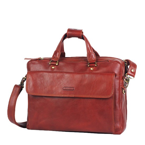 Ce porte-documents-ordinateur en cuir de vachette gras peut se porter à la main ou sur l'épaule grâce à sa bandoulière amovible. Il dispose de deux compartiments dont un spécialement conçu pour transporter un ordinateur 15 pouces. De nombreux espaces de rangement ainsi qu'une poche sur l'avant vous permettent d'optimiser le transport de vos affaires.