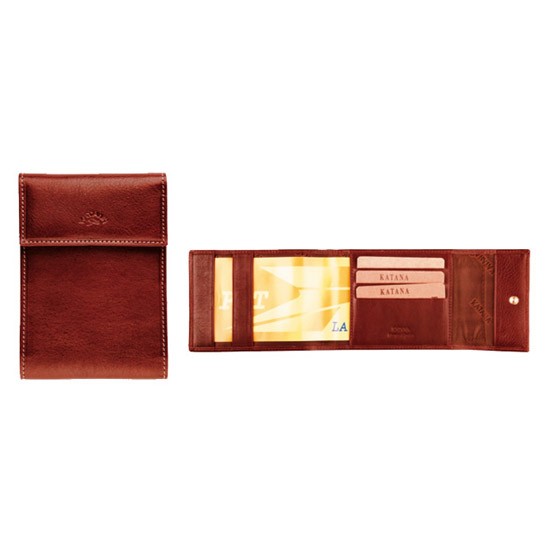 Porte-chéquier en cuir de vachette gras avec plusieurs compartiments cartes.