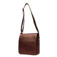 Cette besace en cuir de vachette gras peut se porter en travers grâce à sa bandoulière garnie cuir et réglable. Elle dispose à l'intérieur d'un compartiment principal avec divers espaces de rangement pour stylos, cartes et téléphone portable, ainsi que d'une pochette zippée.